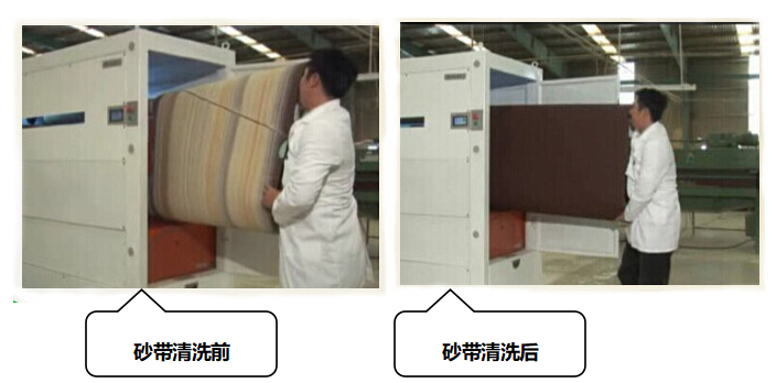 belino對(duì)木工業(yè)中砂帶因堵塞得不到最大利用而報(bào)廢的問題研發(fā)出整套“再生機(jī)“(砂帶脫屑工藝),不論堵塞或燒焦程度多嚴(yán)重的砂帶,此工藝能逐一脫屑使砂帶數(shù)次還原如新,既能大幅度節(jié)省成本且又幫助環(huán)保,給生產(chǎn)業(yè)來帶很高效益的工藝。 “再生機(jī)II”就是由belino所研發(fā)出來的一套專用機(jī)器,配以秘方特制的“砂帶脫屑劑”來發(fā)揮效果。不論砂帶有多糟或多焦,只要砂粒不被砂鈍,“再生機(jī)II”就能把頑固附在砂帶面的碎屑清除掉,并且不會(huì)對(duì)砂帶表面的樹脂造成損傷。每次洗好,砂帶還原新且功效如新。 ?舊帶面被堵塞的可能是實(shí)木油屑,底漆屑,甚至于樹脂的人造石屑,配合“砂帶脫悄劑”,“再生機(jī)II”也能神奇地全部翻洗如新,不留舊痕。