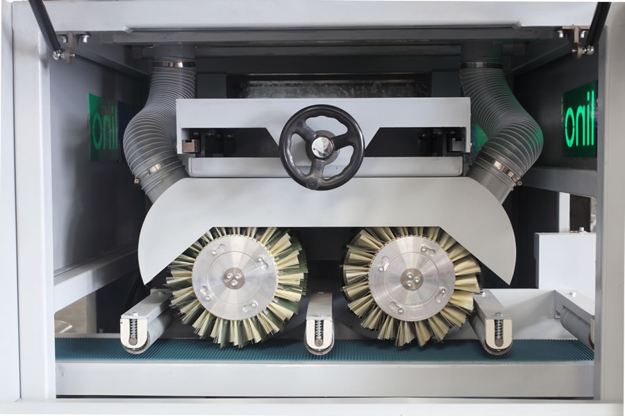 此設備帶自動進料系統,三個面同時打磨,大大提高生產效率。 適用于各種實木、密度板、貼皮板等等直線型(如門邊線、踢腳線、相框等等)、L型的木線和長條木板的規則面、異形面、平面和曲面的白坯、油漆的打磨、拋光等。